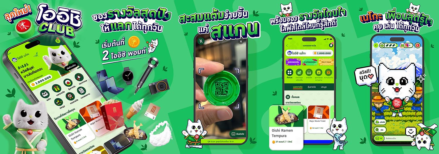 โออิชิ กรีนที เดินหน้ารีเฟรชแพลตฟอร์มรับผู้บริโภคยุคดิจิทัล เปิดแคมเปญ ‘รู้สึกดีทุก TEA ที่เข้าแอปโออิชิคลับ’ พร้อมเปิดตัว “โออิชิเนโกะ” และทัพพรีเซนเตอร์ เจมีไนน์–โฟร์ท–สกาย–นานิ ชูกลยุทธ์ดื่ม–สแกน–สะสมแต้ม สร้างประสบการณ์ลูกค้าแบบครบลูปและกระตุ้นการมีส่วนร่วมทั่วประเทศ