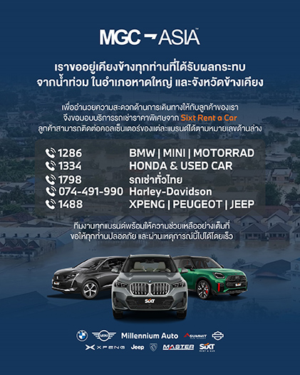 มหาอุทกภัยหาดใหญ่สร้างความเสียหายทั้งชีวิตและทรัพย์สิน หลังสถานการณ์คลี่คลาย ต้องเร่ง ฟื้นฟูพร้อมเยียวยาพี่น้องประชาชนที่ได้รับผลกระทบ เอ็มจีซี-เอเชีย ออโต้เพล็กซ์ หาดใหญ่ ภายใต้บริษัท มิลเลนเนียม กรุ๊ป คอร์ปอเรชั่น (เอเชีย) จำกัด (มหาชน) หรือ MGC-ASIA ร่วมส่งกำลังใจและความช่วยเหลือ ผ่านแคมเปญ ‘อยู่ที่ไหนจะไปหา’ จัดบริการรถยกฉุกเฉินฟรี สำหรับลูกค้า พร้อมดูแลรักษาตามมาตรฐาน รวมถึงบริการรถเช่า SIXT ในราคาพิเศษ