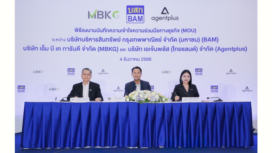 บริษัทบริหารสินทรัพย์ กรุงเทพพาณิชย์ จำกัด (มหาชน) (BAM) ได้ลงนามบันทึกข้อตกลงความร่วมมือทางธุรกิจ (MOU) บริษัท เอ็ม บี เค การันตี จำกัด (MBKG) กับ บริษัท เอเจ้นพลัส (ไทยแลนด์) จำกัด (Agentplus) และ เพื่อลดระยะเวลาในการถือครองทรัพย์ และเร่งการสร้างรายได้ รวมทั้งเพิ่มช่องทางการให้บริการลูกค้า เพื่อให้เกิดการเติบโตทางธุรกิจอย่างยั่งยืน
