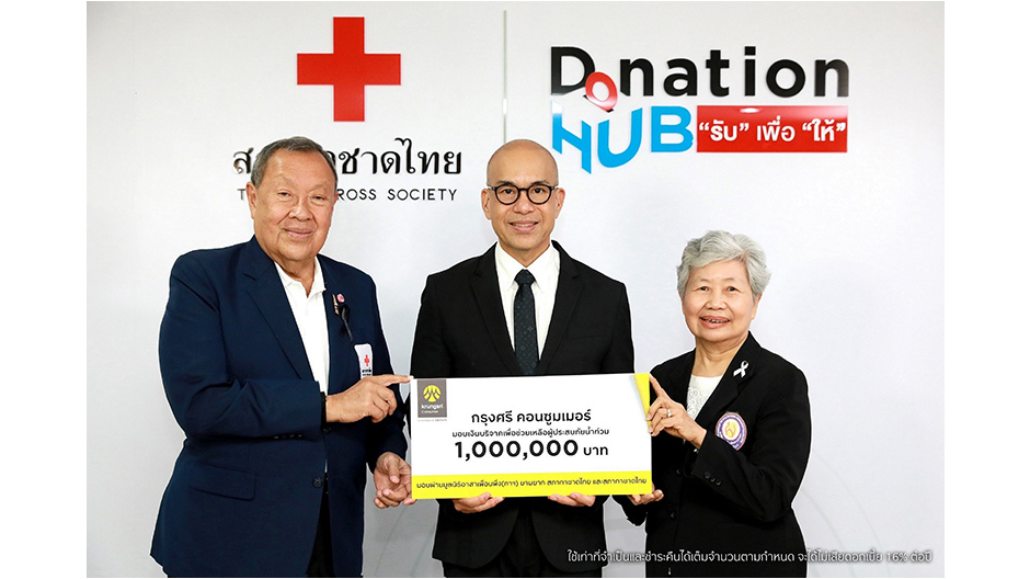 กรุงศรี คอนซูมเมอร์ ผู้ให้บริการบัตรเครดิตและสินเชื่อส่วนบุคคล นำโดย นายอธิศ รุจิรวัฒน์ (กลาง) ประธานคณะเจ้าหน้าที่ด้านกรุงศรี คอนซูมเมอร์ ร่วมช่วยเหลือผู้ประสบภัยน้ำท่วมภาคใต้ด้วยการบริจาคเงินรวม 1,000,000 บาท ซึ่งแบ่งเป็นบริจาคผ่านสภากาชาดไทยจำนวน 500,000 บาท และบริจาคผ่านมูลนิธิอาสาเพื่อนพึ่ง (ภาฯ) ยามยาก สภากาชาดไทย จำนวน 500,000 บาท โดยมีนายขรรค์ ประจวบเหมาะ (ซ้าย) ผู้อำนวยการสำนักงานจัดหารายได้ สภากาชาดไทย และศาสตราจารย์กิตติคุณ ดร. อัจฉรา จันทร์ฉาย (ขวา) รองประธานกรรมการ มูลนิธิอาสาเพื่อนพึ่ง (ภาฯ) ยามยาก สภากาชาดไทย เป็นตัวแทนรับมอบ เพื่อสนับสนุนการฟื้นฟูและบรรเทาความเสียหายอย่างเร่งด่วน พร้อมเชิญชวนสมาชิกบัตรเครดิตในกลุ่มกรุงศรี คอนซูมเมอร์ ร่วมบริจาคช่วยผู้ประสบภัยฯ สามารถเลือกบริจาคผ่านแอปพลิเคชัน UCHOOSE ได้ 2 วิธี คือ แลกคะแนนสะสมบัตรเครดิต กรุงศรีและบัตรกรุงศรีเฟิร์สช้อยส์เป็นเงินบริจาค ทุก 1,000 คะแนนเท่ากับบริจาค 100 บาท หรือบริจาคเงินผ่านวงเงินบัตรเครดิตในกลุ่มกรุงศรี คอนซูมเมอร์ ตั้งแต่วันที่ 25 พฤศจิกายน 2568 – 31 มกราคม 2569  โดยสามารถกดเลือกทำรายการบริจาคได้ด้วยตนเองที่เมนู U GIVE > เลือกบริจาคให้มูลนิธิอาสาเพื่อนพึ่ง (ภาฯ) ยามยาก หรือสภากาชาดไทย > เลือกบัตรที่ต้องการทำรายการ > เลือกบริจาคโดยแลกคะแนน หรือบริจาคเงินผ่านวงเงินบัตรเครดิต (เงื่อนไขเป็นไปตามที่บริษัทกำหนด) ทั้งนี้ ใช้เท่าที่จำเป็นและชำระคืนได้เต็มจำนวนตามกำหนด จะได้ไม่เสียดอกเบี้ย 16% ต่อปี