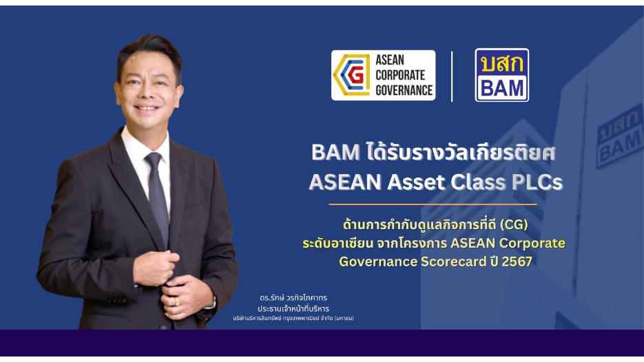 BAM ได้รับการประเมินการกำกับดูแลกิจการที่ดีของบริษัทจดทะเบียน จากโครงการ ASEAN Corporate Governance Scorecard (ASEAN CG Scorecard) ประจำปี 2567 โดยได้รับรางวัลในประเภท ASEAN Asset Class PLCs
