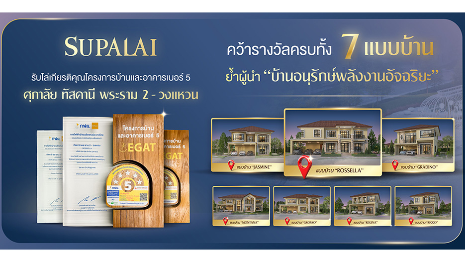 ศุภาลัย คว้าโล่เกียรติคุณโครงการบ้านและอาคารเบอร์ 5 ตอกย้ำผู้นำบ้านอนุรักษ์พลังงานอัจฉริยะ  “ศุภาลัย ทัสคานี พระราม 2–วงแหวน” คว้ารางวัลครบทั้ง 7 แบบบ้าน
