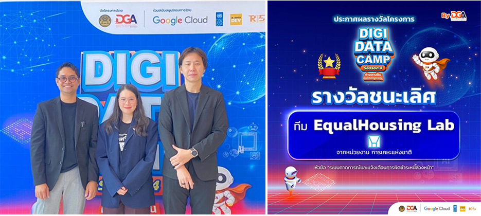 การเคหะแห่งชาติ สร้างผลงานโดดเด่น ในระดับประเทศจากการเข้าร่วมการแข่งขันด้านการใช้เทคโนโลยีปัญญาประดิษฐ์เพื่อการวิเคราะห์ข้อมูล (AI for Data Analytics) ภายใต้โครงการ DIGI Data Camp Season 4 จัดโดยสำนักงานพัฒนารัฐบาลดิจิทัล (องค์การมหาชน) หรือ DGA ซึ่งมีผู้เข้าร่วมแข่งขันกว่า 465 ทีมจากทั่วประเทศ โดยทีม EqualHousing Lab ของการเคหะแห่งชาติ ประกอบด้วย นายอธิป รักอาชีพ นายโชคอนันต์ สุดมี และนางสาวปิยาณุช วิวัฒน์บวรวงษ์ ฝ่ายวิชาการและพัฒนานวัตกรรมเพื่อที่อยู่อาศัย ในการนำเสนอผลงาน Dashboard “ระบบคาดการณ์และแจ้งเตือนการผิดชำระหนี้ล่วงหน้า” ซึ่งเป็นการประยุกต์ใช้เทคโนโลยีปัญญาประดิษฐ์เพื่อการวิเคราะห์ข้อมูล จัดการ และพยากรณ์ความเสี่ยงด้านการผิดนัดชำระหนี้ล่วงหน้า พร้อมทั้งเป็นการสนับสนุนการพัฒนาและบริหารจัดการองค์กรภาครัฐสู่การเป็นองค์กรขับเคลื่อนด้วยข้อมูล (Data-Driven Organization)