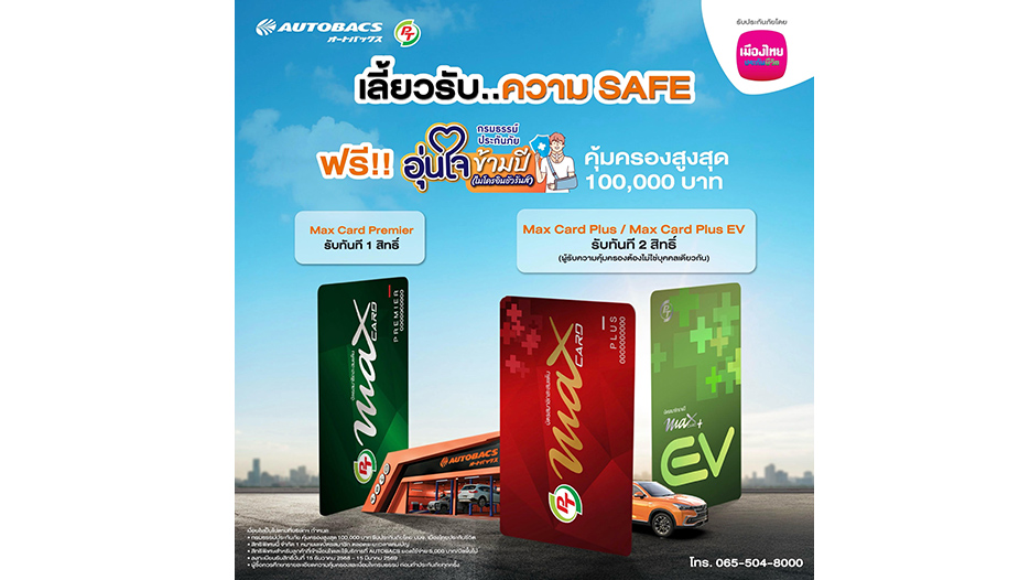 โดย กรมธรรม์ประกันภัยอุ่นใจข้ามปี (ไมโครอินชัวรันส์)” มีระยะเวลาคุ้มครอง 30 วัน นับจากวันเริ่มต้นระยะเวลาเอาประกันภัย ซึ่งผู้ที่จะได้รับสิทธิ์จะต้องถือสัญชาติไทยเท่านั้น และมีอายุตั้งแต่ 15 ปีบริบูรณ์ ถึง 70 ปีบริบูรณ์ ณ วันที่ทำประกันภัย โดยลูกค้าออโต้แบคส์ สามารถรับสิทธิ์ได้แล้วตั้งแต่วันที่ 15 ธันวาคม 2568 – 15 มีนาคม 2569 (จำนวนจำกัด 40,000 สิทธิ์) สำหรับที่สนใจหรือต้องการสอบถามข้อมูลเพิ่มเติม ติดต่อเมืองไทยประกันชีวิต โทร. 1766 ตลอด 24 ชั่วโมง หรือติดต่อ Call Center AUTOBACS 065-504-8000 พร้อมให้บริการทุกวัน (จันทร์-อาทิตย์) เวลา 08.00-20.00 น.