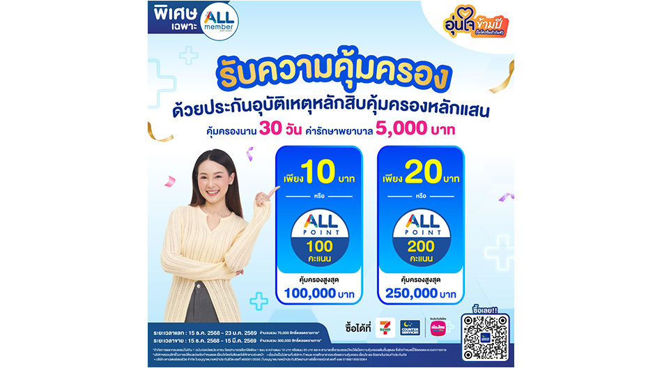 นางเพียรฑอง เฉิดรัศมี กรรมการผู้จัดการ บริษัท เคาน์เตอร์เซอร์วิส จำกัด กล่าวว่า “ในช่วงเทศกาลปีใหม่ที่เป็นช่วงเวลาแห่งการเดินทางและการเฉลิมฉลอง เคาน์เตอร์เซอร์วิส ตระหนักถึงความสำคัญในการรณรงค์ให้ประชาชนวางแผนความเสี่ยงก่อนออกเดินทาง เพื่อให้ทุกครอบครัวได้พักผ่อนอย่างเต็มที่ โดยสามารถเข้าถึงความคุ้มครองได้อย่างง่าย สะดวกสบายที่สุด จึงนำเสนอกรมธรรม์ที่คุ้มค่า “จ่ายหลักสิบ คุ้มครองหลักแสน” โดยประชาชนที่สนใจสามารถซื้อกรมธรรม์ประกันภัยอุ่นใจข้ามปี 20 บาท (ไมโครอินชัวรันส์) หรือกรมธรรม์ประกันภัยอุ่นใจข้ามปี 10 บาท (ไมโครอินชัวรันส์) ได้ง่าย ๆ เพียงแสดงบัตรประชาชนที่ร้านเซเว่นอีเลฟเว่นที่ครอบคลุมกว่า 15,500 สาขาทั่วประเทศ พร้อมชำระเบี้ยประกันภัย และพิเศษสำหรับสมาชิก ALL Member ใช้เพียง 200 คะแนน แลกรับฟรีความคุ้มครองสูงสุด 250,000 บาท จากนั้นจะได้รับสลิปยืนยันการทำรายการ พร้อม SMS หรือ LINE ยืนยันความคุ้มครอง ซึ่งระบุวันเริ่มต้นและวันสิ้นสุดความคุ้มครองอย่างชัดเจน (จำนวนจำกัด 300,000 สิทธิ์) นอกจากนี้ ยังสามารถซื้อผ่านเว็บไซต์ www.counterservice.co.th หรือ 7-Eleven Application ระยะเวลาตั้งแต่วันที่ 15 ธันวาคม 2568 – 15 มีนาคม 2569 โดยในปีนี้ บริษัทฯ ได้ช่วยดูแลคุณภาพชีวิตของพนักงาน ส่งมอบของขวัญแทนคำขอบคุณสำหรับความทุ่มเทให้กับบุคลากรในเครือ CP All ทั่วประเทศ มอบกรมธรรม์ประกันภัยอุ่นใจข้ามปีจำนวน 100,000 สิทธิ์ เคาน์เตอร์เซอร์วิสมุ่งมั่นพัฒนาบริการที่ตอบโจทย์ไลฟ์สไตล์ของประชาชน มุ่งเน้นการอำนวยความสะดวกสูงสุดเพื่อให้คนไทยเข้าถึงความคุ้มครองได้อย่างทั่วถึงและเท่าเทียม
