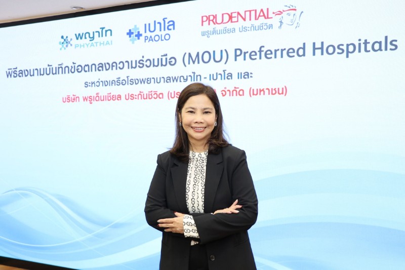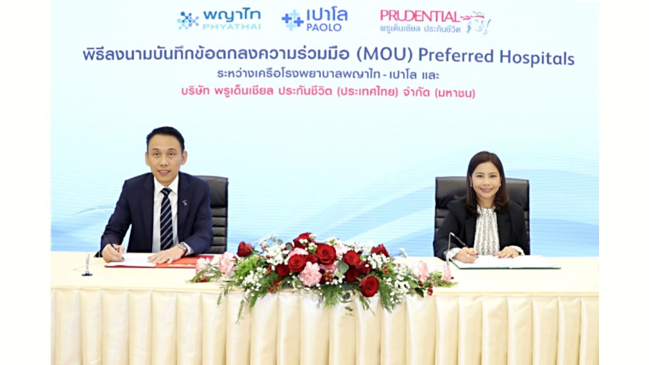นางสาวเปสลารี ธีระสาสน์ ประธานเจ้าหน้าที่บริหารสายงานเทคโนโลยีและปฏิบัติการ และสายงานสุขภาพ บริษัท พรูเด็นเชียล ประกันชีวิต (ประเทศไทย) จำกัด (มหาชน) หรือ พรูเด็นเชียล ประเทศไทย และ นายศุภกร พะวันนา ผู้อำนวยการสายบริหารการตลาด เครือโรงพยาบาลพญาไท–เปาโลร่วมลงนามบันทึกข้อตกลงความร่วมมือ (MOU) เพื่อมอบสิทธิพิเศษด้านสุขภาพ ครอบคลุมการส่งเสริมสุขภาพเชิงป้องกัน การตรวจวินิจฉัย และการรักษาที่มีคุณภาพ ตอกย้ำความมุ่งมั่นในการดูแลลูกค้าในทุกช่วงชีวิตอย่างแท้จริง