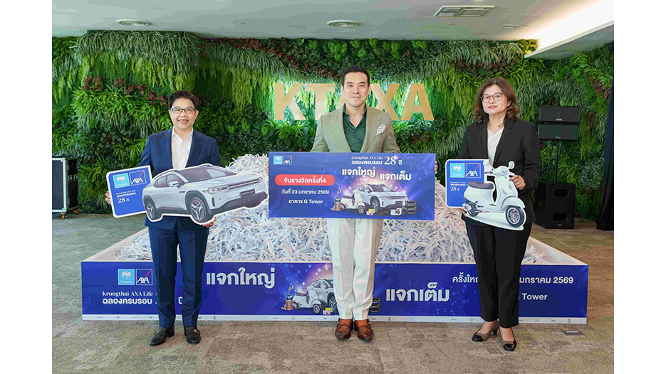 บมจ.กรุงไทย-แอกซ่า ประกันชีวิต นำโดยคุณณัฐพิสิษฐ์ ครุฑครองชัย ประธานเจ้าหน้าที่บริหาร (คนกลาง) พร้อมด้วย คุณบุปผาวดี โอวรารินท์ ประธานเจ้าหน้าที่บริหาร ฝ่ายการตลาด (คนซ้าย) และคุณทิพาพันธ์ เฟื่องปัญญา ประธานเจ้าหน้าที่บริหาร ฝ่ายปฏิบัติการ (คนขวา) จับรายชื่อลูกค้าผู้โชคดีลุ้นรางวัลใหญ่ ภายใต้แคมเปญพิเศษ “ฉลองครบรอบ 28 ปี กรุงไทย-แอกซ่า แจกใหญ่ แจกเต็ม” ซึ่งรางวัลใหญ่ในครั้งนี้ ได้แก่ รถยนต์ DEEPAL E07 Performance AWD มูลค่า 1,999,000 บาท (จำนวน 1 รางวัล) รถจักรยานยนต์ Vespa LX 150 i-GET ABS มูลค่ารางวัลละ 89,900 บาท (จำนวน 3 รางวัล) รวมถึงโทรศัพท์มือถือไอโฟน และไอแพด รวมมูลค่ารางวัลกว่า 7 ล้านบาท โดยแคมเปญดังกล่าวจัดขึ้นเพื่อแทนคำขอบคุณลูกค้าคนสำคัญที่ไว้วางใจให้บริษัทฯ ได้ดูแลให้ความคุ้มครองตลอดมา ทั้งนี้บริษัทฯ ได้ประกาศรายชื่อผู้โชคดีผ่านทางเว็บไซต์ของบริษัทhttps://www.krungthai-axa.co.th/th/luckydraw-2025-r4-announcement โดยลูกค้าผู้โชคดีจากแคมเปญดังกล่าวจะได้รับการติดต่อผ่านทางโทรศัพท์จากผู้แทนบริษัทฯ เพื่อแจ้งรายละเอียดและยืนยันการรับสิทธิ์