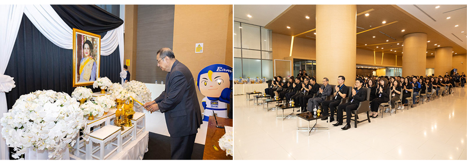 ทั้งนี้ ภายในพิธีได้นิมนต์พระสงฆ์จากวัดยานนาวา กรุงเทพฯ โดยสวดพระพุทธมนต์และประกอบพิธีบำเพ็ญกุศล พร้อมทั้งจัดโต๊ะหมู่บูชา ประดิษฐานพระฉายาลักษณ์ สมเด็จพระนางเจ้าสิริกิติ์ พระบรมราชินีนาถ พระบรมราชชนนีพันปีหลวง เพื่อแสดงความจงรักภักดี แสดงความอาลัย และน้อมสำนึกในพระมหากรุณาธิคุณ อันหาที่สุดมิได้ ณ อาคาร BAM สำนักงานใหญ่