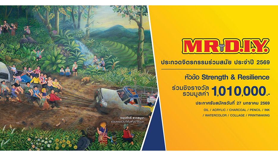 บริษัท มิสเตอร์. ดี.ไอ.วาย. โฮลดิ้ง (ประเทศไทย) จำกัด (มหาชน) เปิดรับสมัครนักเรียน นักศึกษา และประชาชนทั่วไปจากทั่วประเทศ เข้าร่วม การประกวดจิตรกรรมร่วมสมัย MR. D.I.Y. ประจำปี 2569 ภายใต้หัวข้อ “Strength & Resilience” (ความเข้มแข็งและความยืดหยุ่น)” เปิดรับสมัครตั้งแต่วันที่ 27 มกราคม – 20 เมษายน 2569 ชิงเงินรางวัลรวมมูลค่า 1,010,000 บาท พร้อมโอกาสจัดแสดงผลงาน ณ หอศิลปวัฒนธรรมแห่งกรุงเทพมหานคร (BACC) และสิทธิ์เข้าร่วมการแข่งขันในระดับภูมิภาค ณ ประเทศอินโดนีเซีย