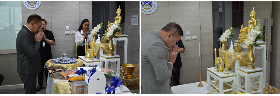 พิธีทำบุญในครั้งนี้มีคณะผู้บริหารนำโดย นายชนะพล มหาวงษ์ ผู้จัดการกองทุนประกันวินาศภัย และนายนพพล เบี้ยวไข่มุข รักษาการผู้จัดการกองทุนประกันชีวิต พร้อมด้วยผู้บริหารและบุคลากรของทั้งสองกองทุนเข้าร่วมพิธี โดยได้รับเมตตาจากพระสงฆ์วัดสิริกมลาวาส จำนวน 5 รูป ประกอบพิธีทางศาสนา ภายในพิธีได้มีการถวายปัจจัยไทยธรรม และถวายภัตตาหารเพลแด่พระสงฆ์ เพื่อเป็นการสืบสานขนบธรรมเนียมประเพณีอันดีงามของไทย และเสริมสร้างขวัญกำลังใจให้แก่บุคลากร
