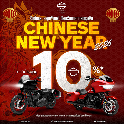 ฮาร์ลีย์-เดวิดสัน เฉลิมฉลองเทศกาลตรุษจีน มอบข้อเสนอสุดพิเศษ ดาวน์เริ่มต้น 10% รับคอร์สเรียนขับขี่บิ๊กไบค์ พร้อมโปรโมชั่นสุดคุ้มทั้งสินค้าและบริการ ตลอดเดือนกุมภาพันธ์ 2569