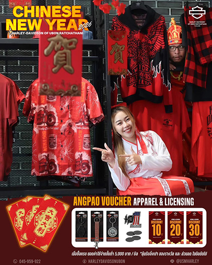 ยูเอส มอเตอร์ไบค์ ผู้จำหน่ายมอเตอร์ไซค์ ฮาร์ลีย์-เดวิดสัน อย่างเป็นทางการในประเทศไทย ภายใต้บริษัท มิลเลนเนียม กรุ๊ป คอร์ปอเรชั่น (เอเชีย) จำกัด (มหาชน) หรือ MGC-ASIA เฉลิมฉลองเทศกาลตรุษจีน มอบข้อเสนอสุดพิเศษ ดาวน์เริ่มต้น 10% และฟรีคอร์สเรียนขับขี่บิ๊กไบค์ โดยผู้เชี่ยวชาญจาก ฮาร์ลีย์-เดวิดสัน ประเทศไทย พร้อมโปรโมชั่นสินค้าเสื้อผ้า อะไหล่ ของแต่งรถ และบริการ วันนี้ถึง 28 กุมภาพันธ์ 2569