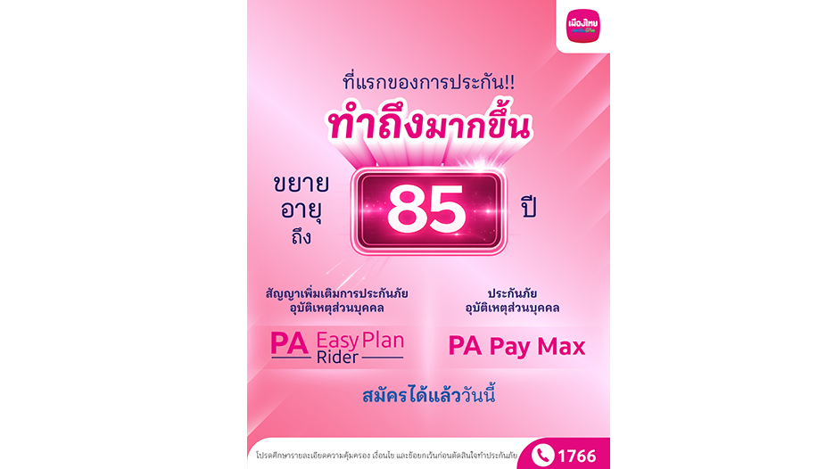 เมืองไทยประกันชีวิต รุกมาตรฐานใหม่ประกันอุบัติเหตุ ขยายอายุรับประกันถึง 85 ปี คุ้มครองสูงสุด 10 ล้านบาท ทั่วโลก 24 ชม. พร้อมสิทธิประโยชน์สุขภาพครบวงจร
