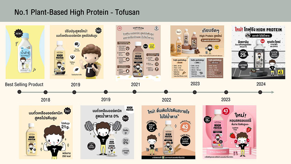 ผลลัพธ์คือเมื่อพฤติกรรมผู้บริโภคขยับเข้าหาโปรตีนทางเลือก (Plant-based Protein) โทฟุซังจึงกลายเป็น First Mover ที่มีสินค้าพร้อมเสิร์ฟบนชั้นวางในทันที ปัจจุบันกลุ่ม High Protein 0% น้ำตาล ไม่เพียงแต่เป็น Key Driver ของยอดขาย แต่ยังเป็นตัวสร้างภาพลักษณ์ “Innovative Brand” ให้กับโทฟุซังได้อย่างแข็งแกร่ง