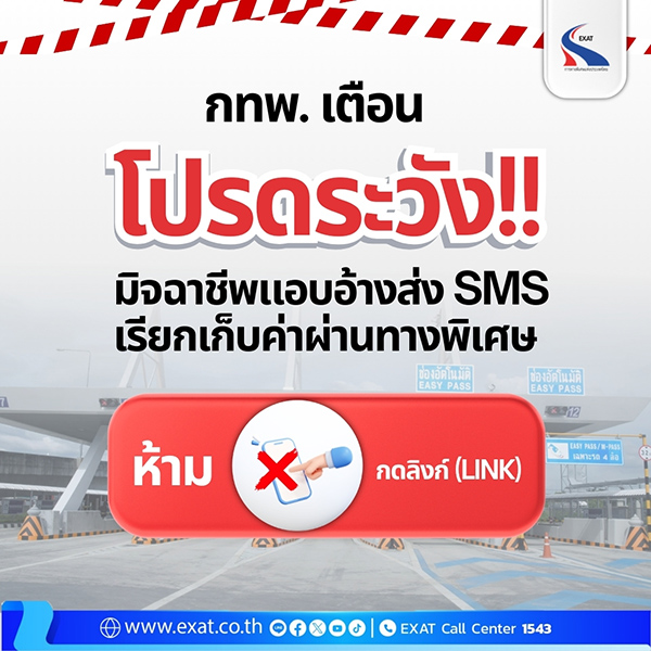 กทพ. เตือนภัย! มิจฉาชีพแอบอ้างส่ง SMS เรียกเก็บค่าผ่านทางพิเศษ