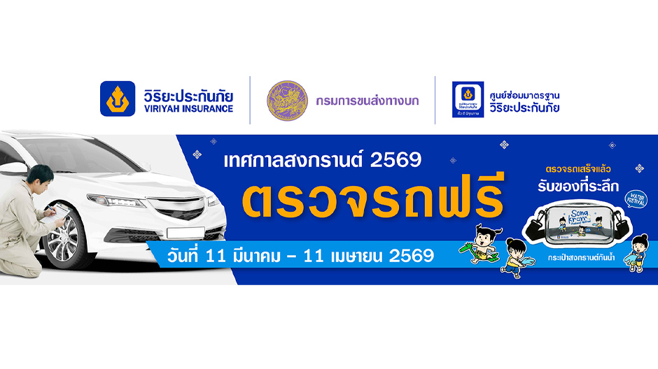 วิริยะประกันภัย ร่วมกับ กรมการขนส่งทางบก จัดกิจกรรม “ตรวจรถฟรี ขับขี่ปลอดภัย” ให้ประชาชนตระหนักถึงความสำคัญของการเตรียมความพร้อมของสภาพรถยนต์ก่อนออกเดินทาง มุ่งลดอุบัติเหตุและส่งเสริมความปลอดภัยทางการเดินทาง ตลอดช่วงเทศกาลสงกรานต์ 2569 โดยให้บริการตรวจสภาพรถยนต์เบื้องต้นฟรี 20 รายการ พร้อมรับ “กระเป๋าสงกรานต์กันน้ำ” เป็นของที่ระลึกฟรี เมื่อนำรถมาใช้บริการ ณ ศูนย์ซ่อมมาตรฐานวิริยะประกันภัย ในพื้นที่กรุงเทพฯ และปริมณฑล จำนวน 31 แห่ง ตั้งแต่วันนี้ ถึง วันที่ 11 เมษายน 2569