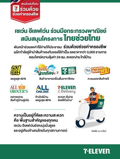 การขับเคลื่อนโครงการร่วมกับภาครัฐในครั้งนี้ ไม่เพียงแต่เป็นการช่วยลดภาระทางการเงินให้แก่ประชาชนเท่านั้น แต่ยังเป็นการแสดงถึงความมุ่งมั่นของของเซเว่น อีเลฟเว่น ในการยืนหยัด “สร้างชุมชนอุ่นใจ” ที่พร้อมจะดูแลและอยู่เคียงข้างคนไทยในทุกสถานการณ์ โดยใช้ศักยภาพของจำนวนร้านสาขาที่ครอบคลุมทั่วประเทศและช่องทางบริการที่หลากหลาย ในการส่งต่อความช่วยเหลือและสร้างความอุ่นใจให้แก่ชุมชน เพื่อให้สังคมไทยสามารถก้าวผ่านช่วงเวลาที่ท้าทายนี้ไปได้ด้วยความมั่นคง