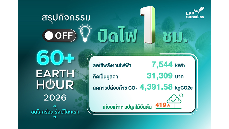 LPP สรุปผลกิจกรรม “60+ Earth Hour 2026” ผนึกกำลัง 270 โครงการลดใช้พลังงานต่อเนื่อง พร้อมชูมาสเตอร์เซอร์วิส “UP” ยกระดับการดูแลคุณภาพชีวิตที่ยั่งยืน
