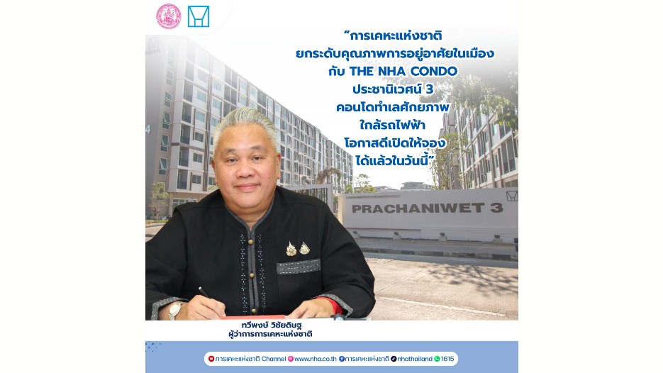 การเคหะแห่งชาติ เปิดจอง “โครงการเคหะชุมชนฯ ประชานิเวศน์ 3” ชูทำเลทอง ใกล้รถไฟฟ้า 2 สาย เริ่มวันนี้ จองเพียง 5,000 บาท