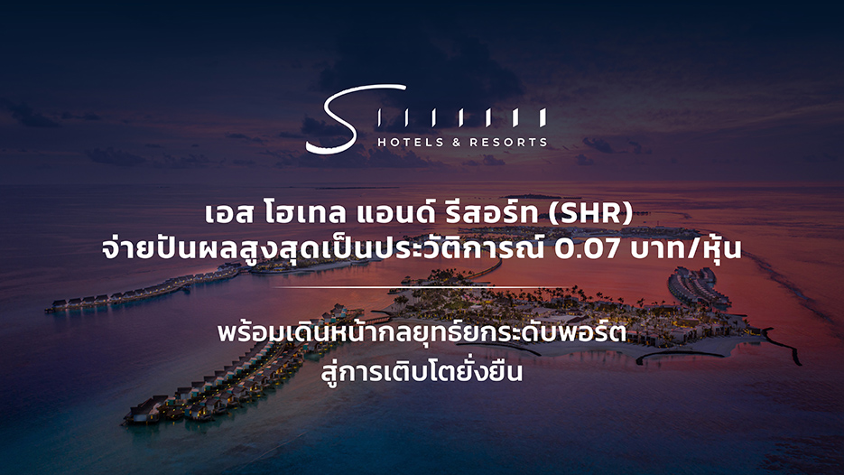SHR ไฟเขียวจ่ายปันผลปี 2568 ที่ 0.07 บาทต่อหุ้น หลังทำกำไรสูงสุดเป็นประวัติการณ์ พร้อมเดินหน้ากลยุทธ์เสริมแกร่งพอร์ตโรงแรม ดันการเติบโตระยะยาวอย่างยั่งยืน